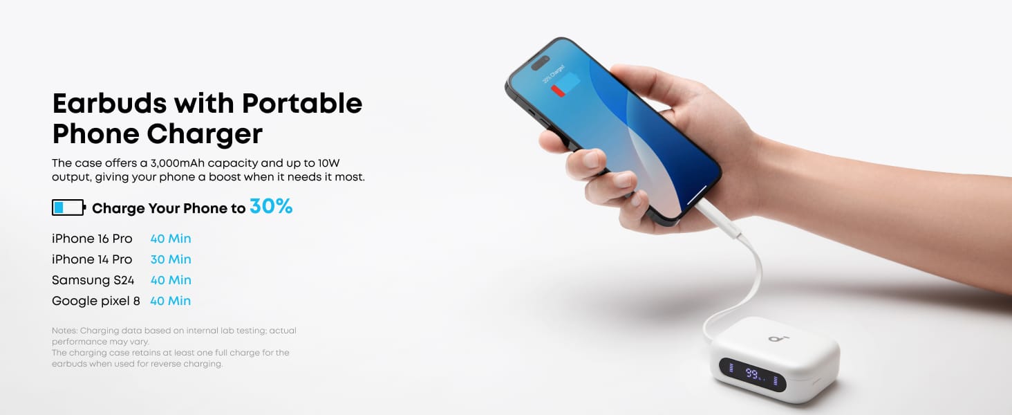 - Portable Phone Charging: The case charges iPhone 16 Pro to 50% or Samsung S24 to 45% with 10W and 3,000mAh power.
