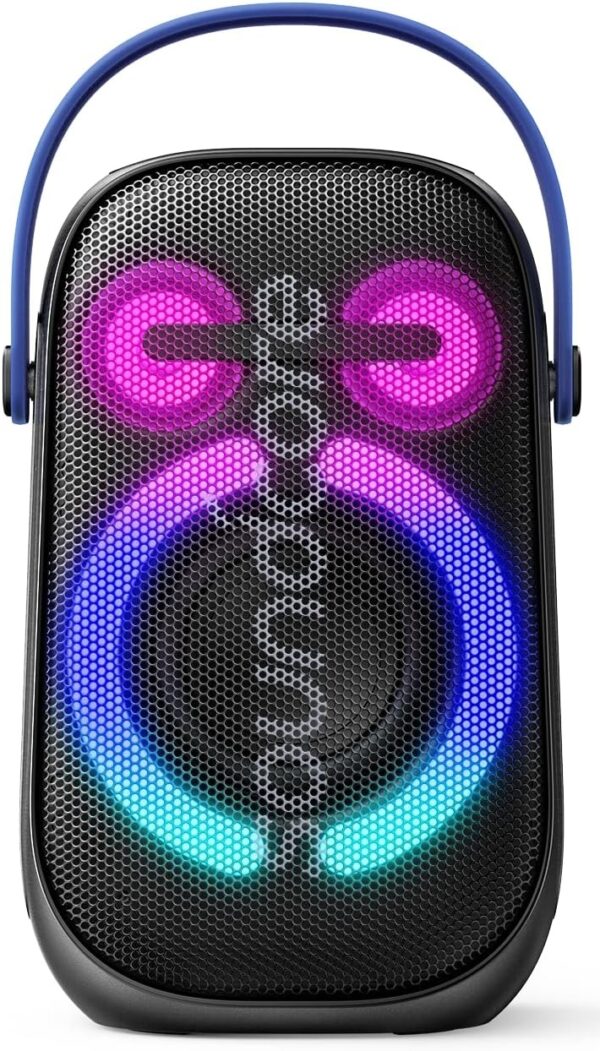 • Connect with soundcore App: Here's the spark to get the party started. Play games, customize with even more EQ and light selections, and switch between Indoor and Outdoor sound modes—instantly!