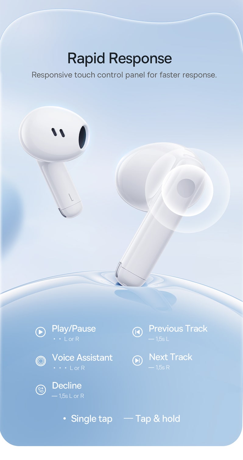 • Bluetooth 5.3: Equipped with an advanced Bluetooth 5.3 chip, these earphones provide an intelligent and stable connection. The chip enables independent and synchronized pairing of the left and right earbuds, ensuring a seamless listening experience.