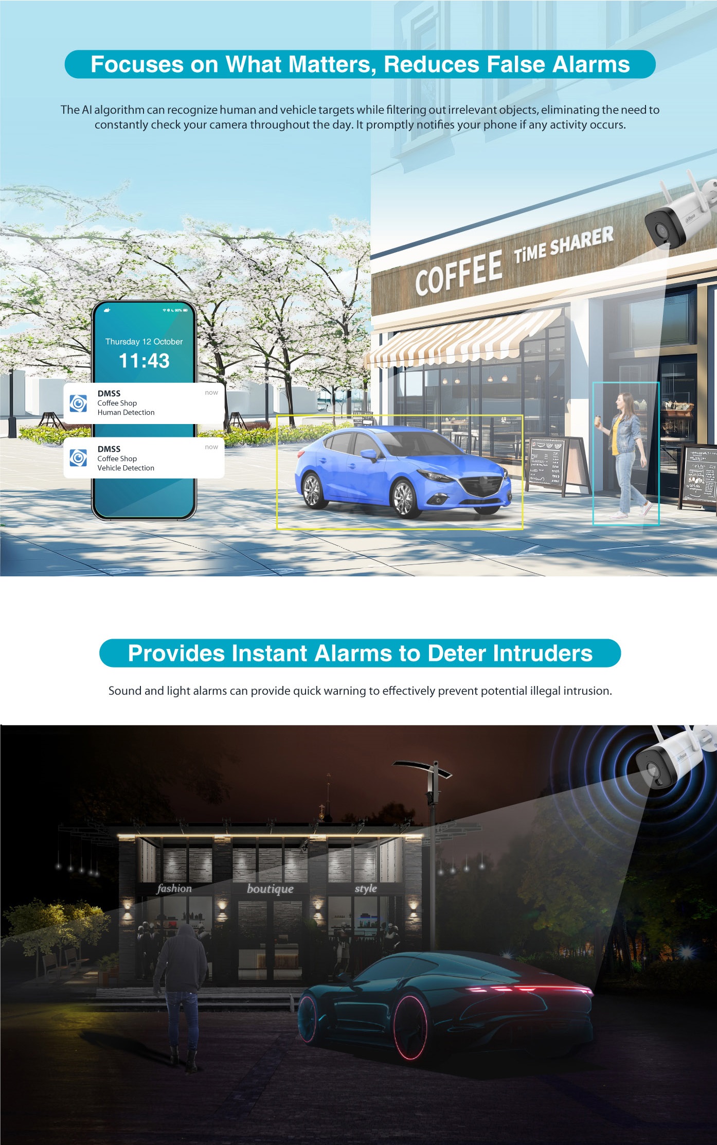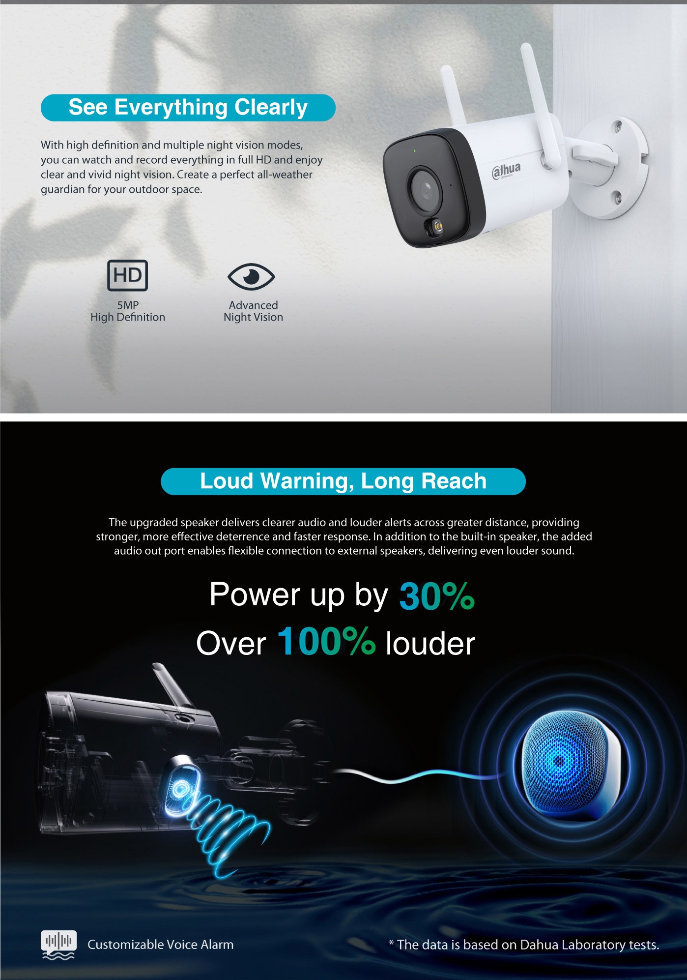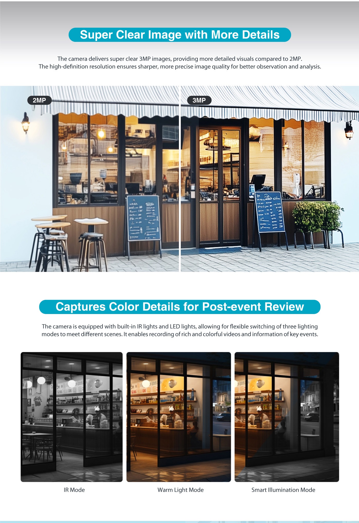 • Illumination Distance : Up to 30 m (IR) / Up to 30 m (Warm light)