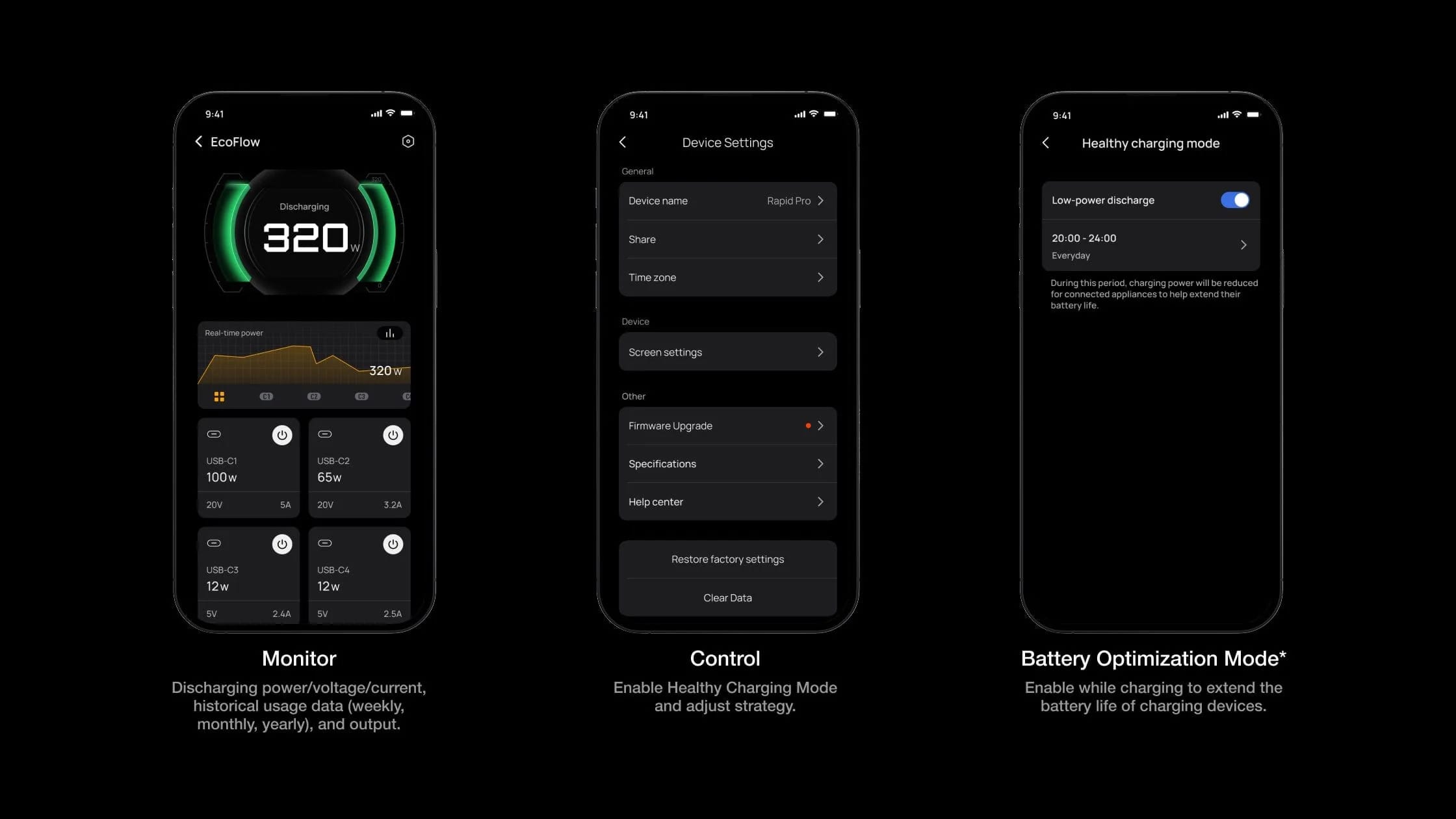 - Control the power supply via the app: control the power distribution within the app with intelligent power mode. If multiple devices are charged at the same time, each port automatically detects and distributes the energy according to the requirements of each device.
