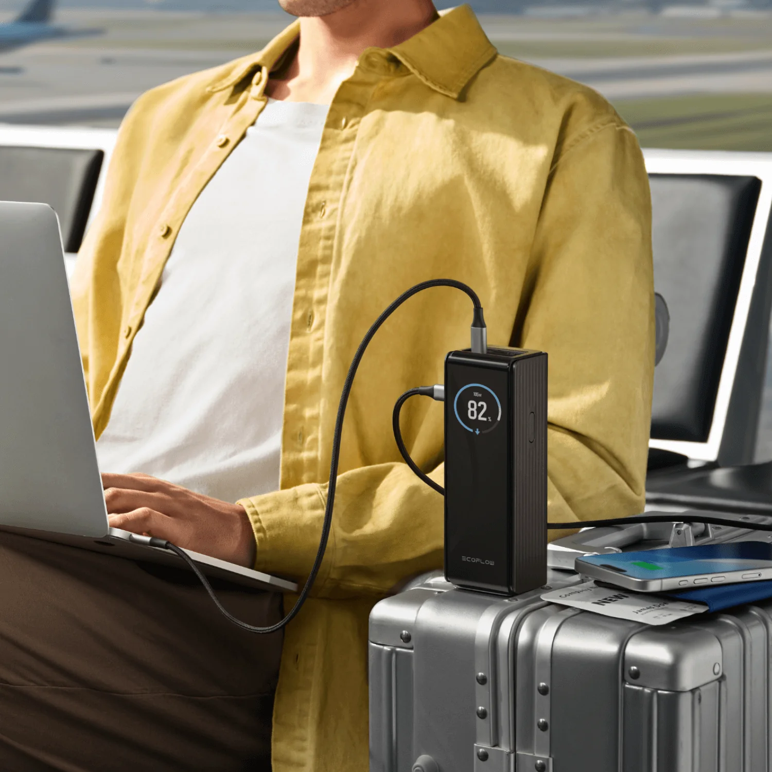 • 25,000mAh Capacity, Air-Travel-Friendly: Can fully charge a MacBook, meeting remote work needs for 1-2 days. Can charge your phone 4-5 times, eliminating battery anxiety.