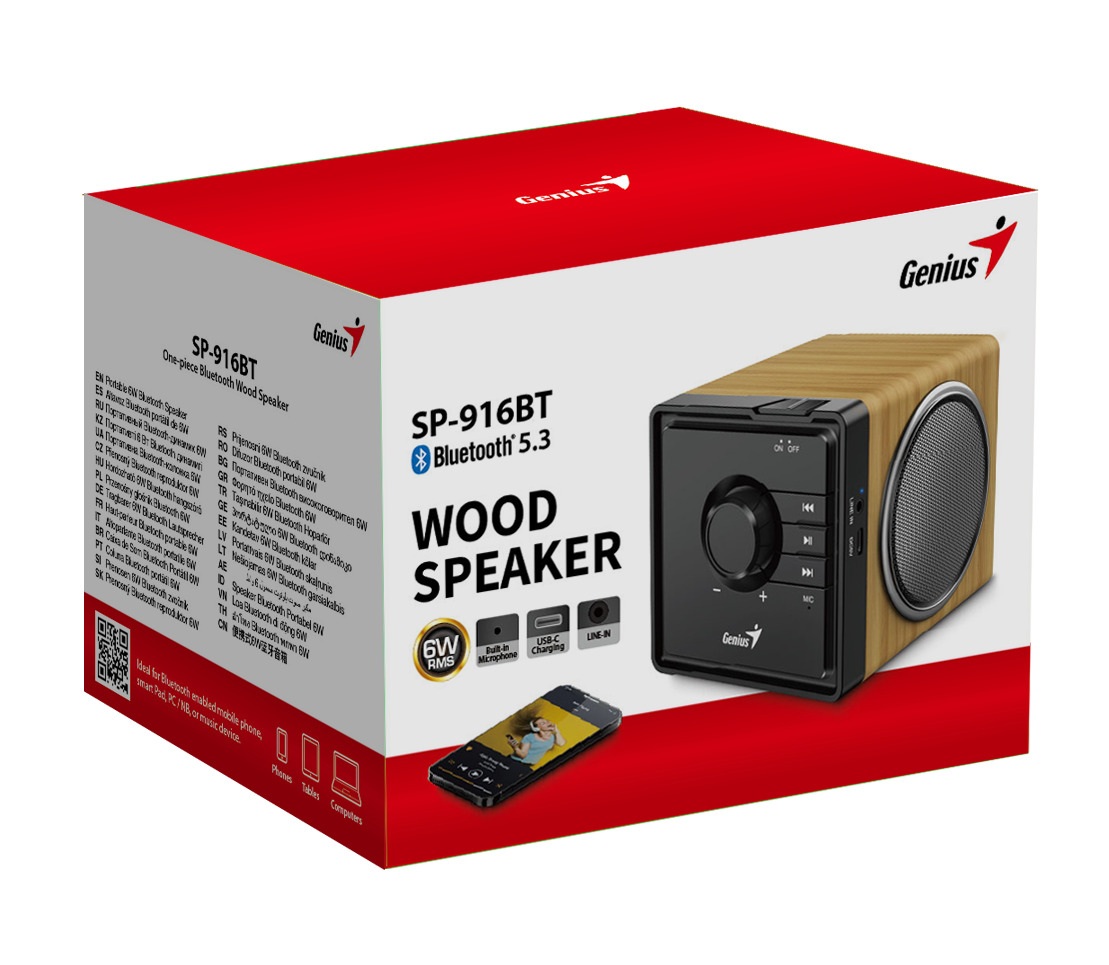 Genius Mobile Speaker Portable BT 6W SP-916BT Pine Wood