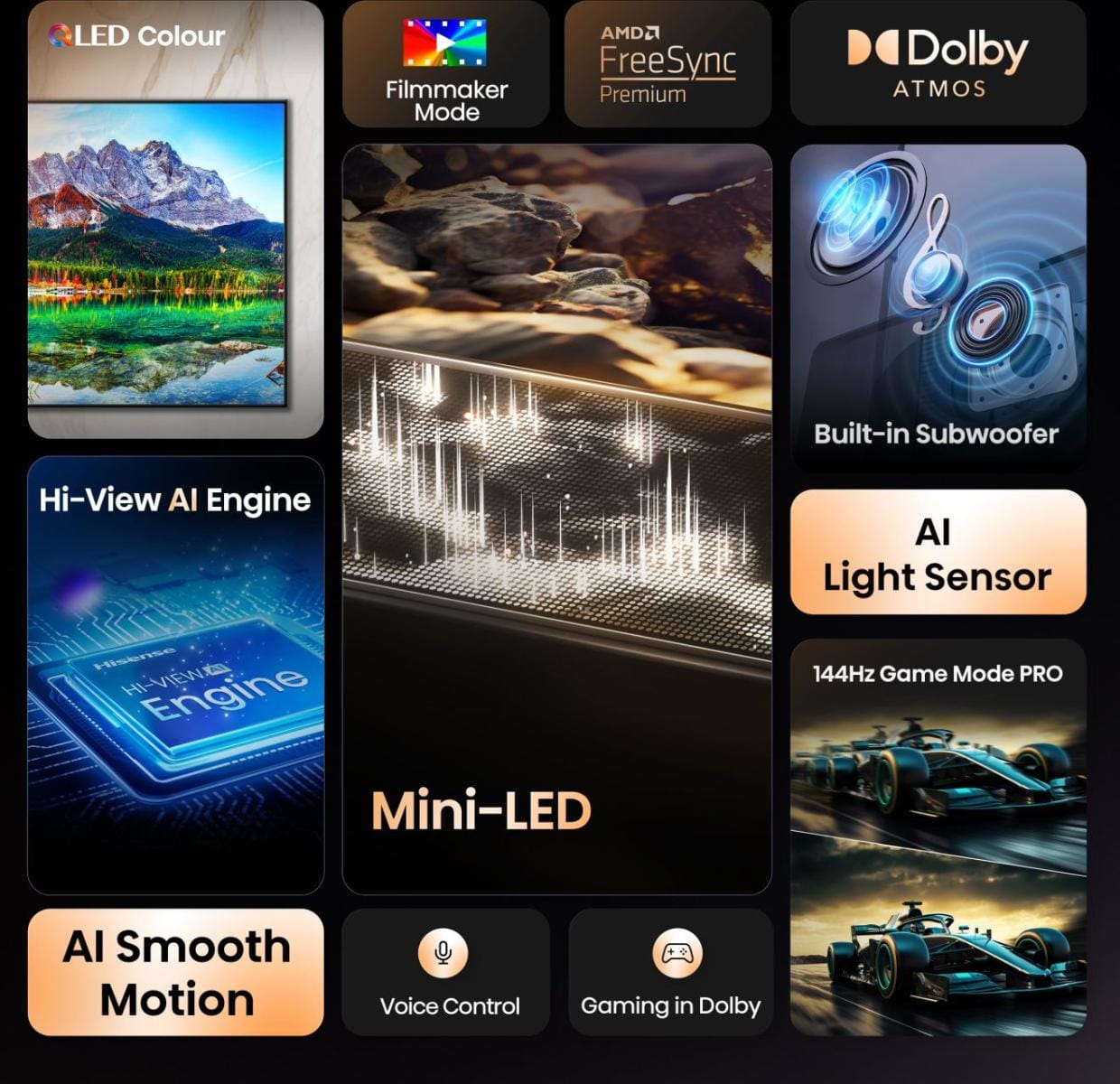 - Mini-LED Mini-LED technology elevates your viewing experience, bringing vibrant brightness to life while revealing deep, rich shadows with striking clarity.