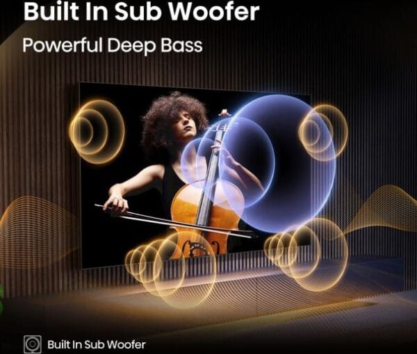 The built-in subwoofer in your TV delivers deep bass. Get captivated by the low-end sounds in every scene, from subtle song beats to action-packed blockbusters.