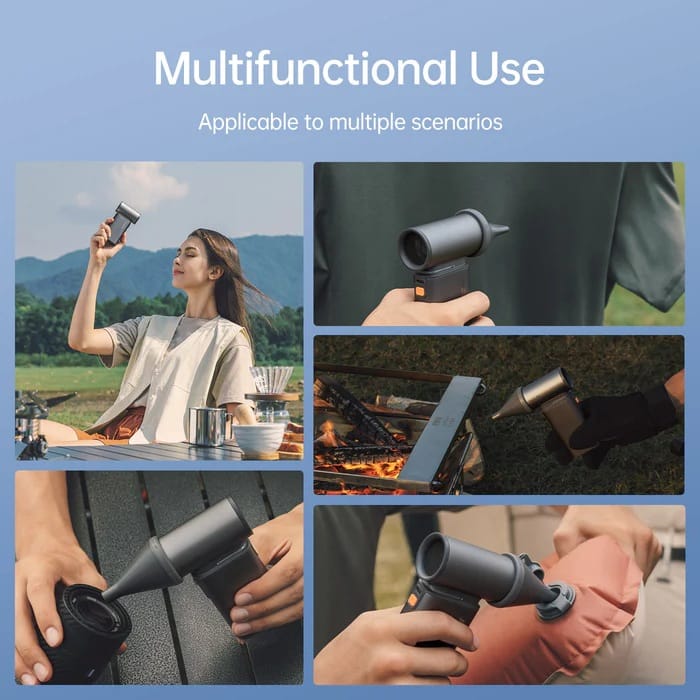 - Equipped with Two Nozzle The hand fan equipped with square nozzle and round Nozzle. The speed of 100% is designed for dust elimination and air Inflation. The Hand Fan can work as air duster to inflate swimming rings, small bouncy beds, balloon, and more.
