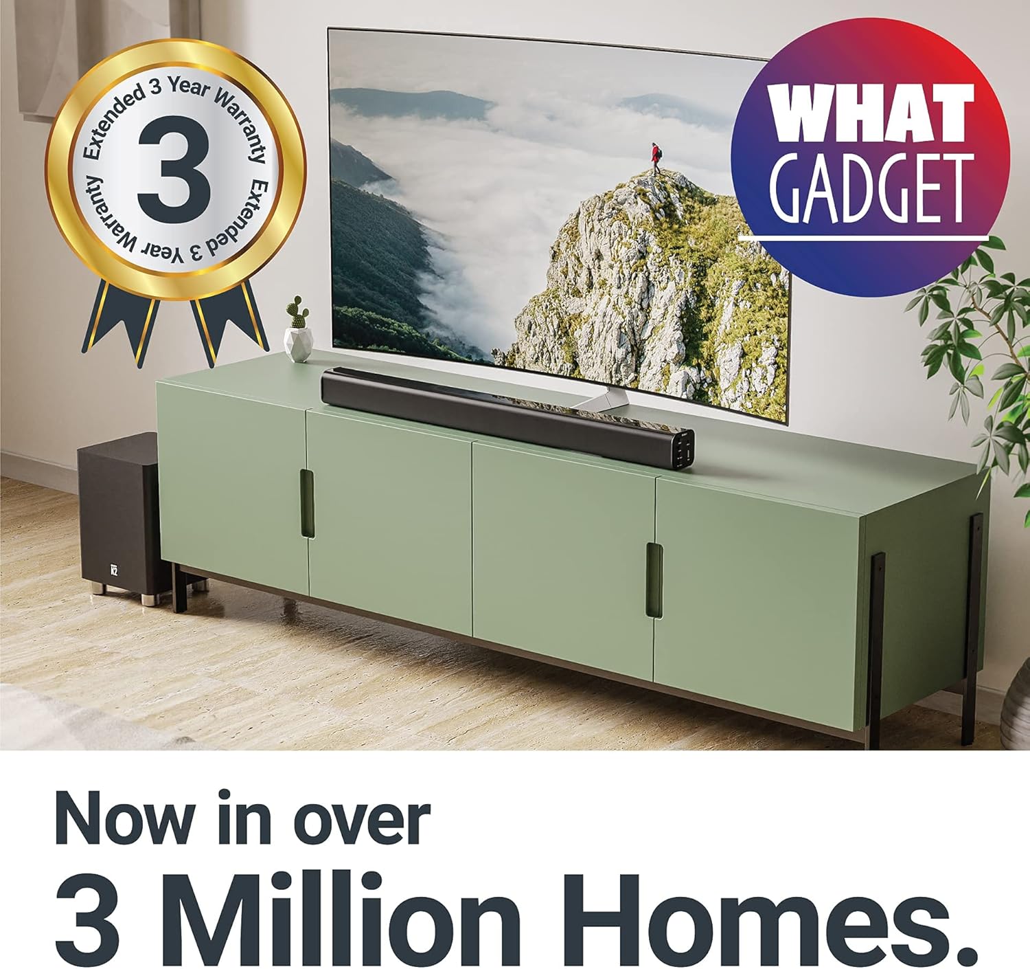 • 𝗖𝗥𝗬𝗦𝗧𝗔𝗟 𝗖𝗟𝗘𝗔𝗥 𝗦𝗢𝗨𝗡𝗗 𝗤𝗨𝗔𝗟𝗜𝗧𝗬: The Majority K2 is a powerful TV sound bar with wireless subwoofer, packed with the latest audio technology and compatible with a wide range of household items such as your phone, TV, PC, laptop, projector, monitor, Blu-Ray or DVD player. Feel true cinematic surround sound in your own home and enjoy an immersive listening experience when connecting via HDMI ARC, Optical or Bluetooth.