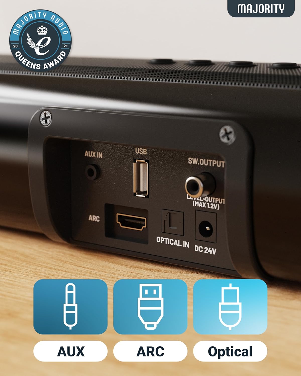 Majority Soundbar NAGA60 120W 2.1 3D Sound Built-in Sub & Wall Mount