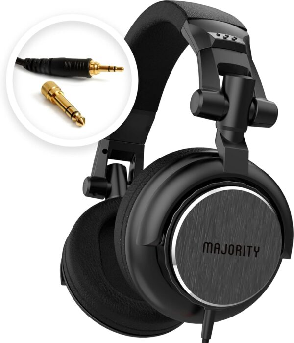 - UNIVERSAL COMPATIBILITY: The Majority Studio wired headphones work with any and every device with a 3.5mm or 6.5mm headphone jack. Phones, tables, mp3 players, portable dvd players, cd players, PC's, laptops, TV's, mixers, turn tables, recording equipment, amplifiers, electric guitars and much more – simply plug and play. Our 3m extended coiled audio cable ensures you can reach all your audio devices without long trailing wires surrounding you.