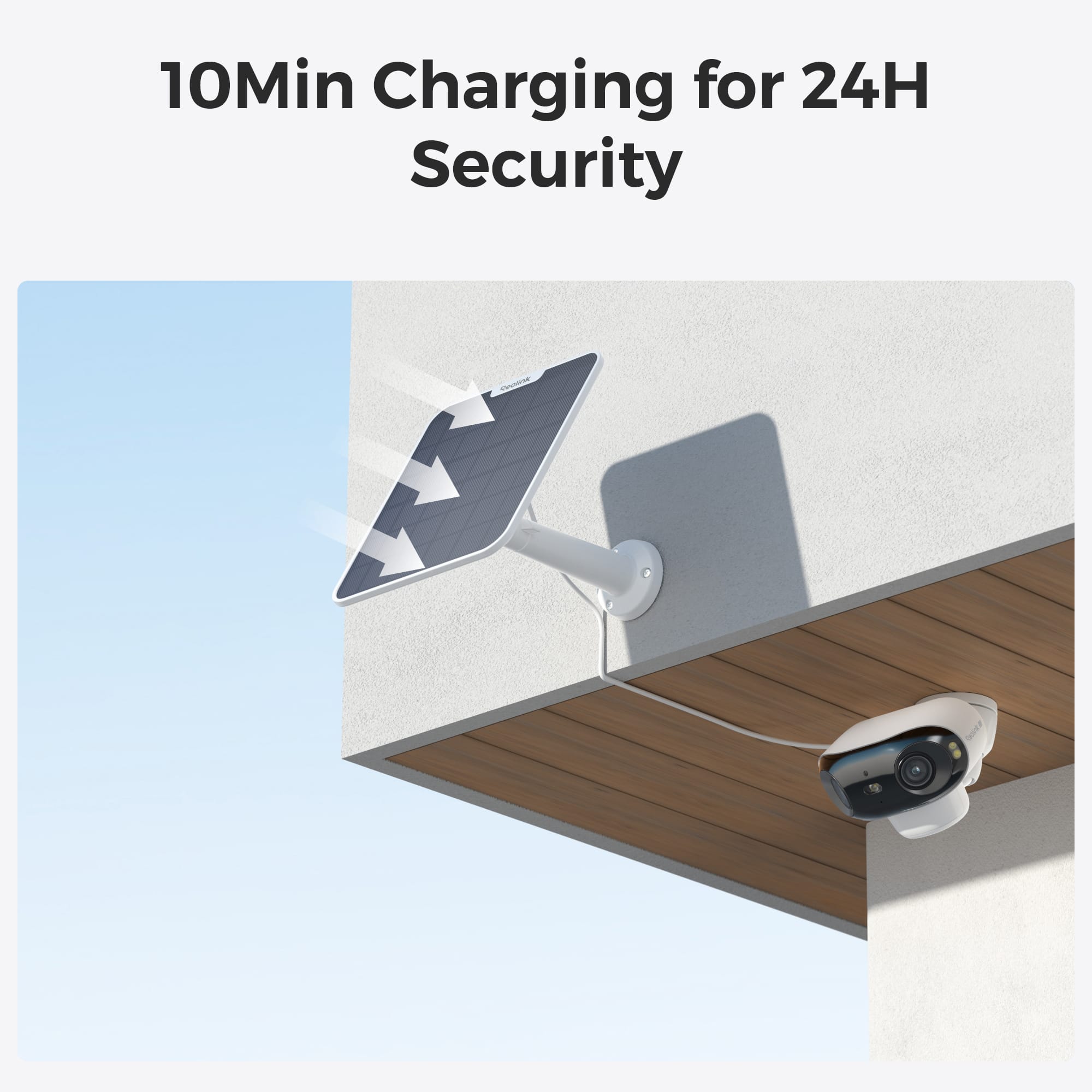 - Connect your Reolink solar powered camera to this solar panel with 4m connection cable (included) to get non-stop power. The 360° wall mount allows you to easily position the weather resistant solar panel and ensure that it's perfectly positioned to maximize sun light exposure
