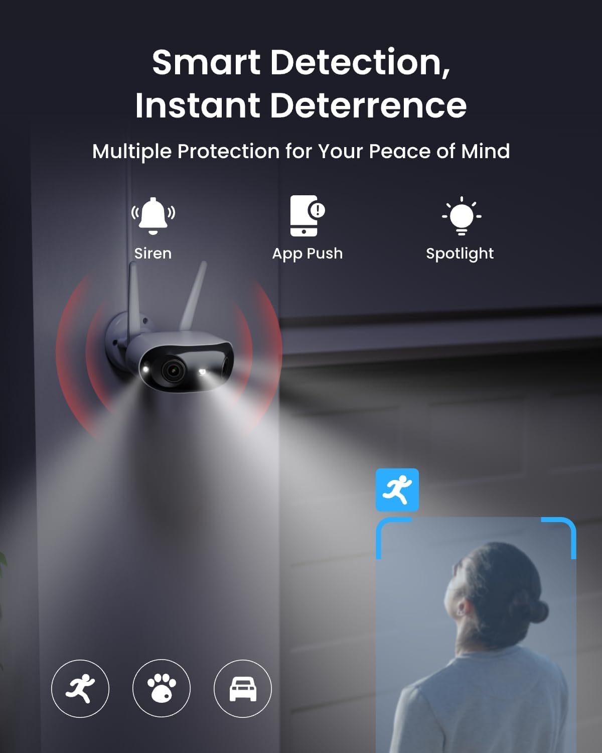 - Smart Alarm : Motion detection; Person/vehicle/animal detection; Virtual fence alert; Zone intrusion alert; Zone linger alert