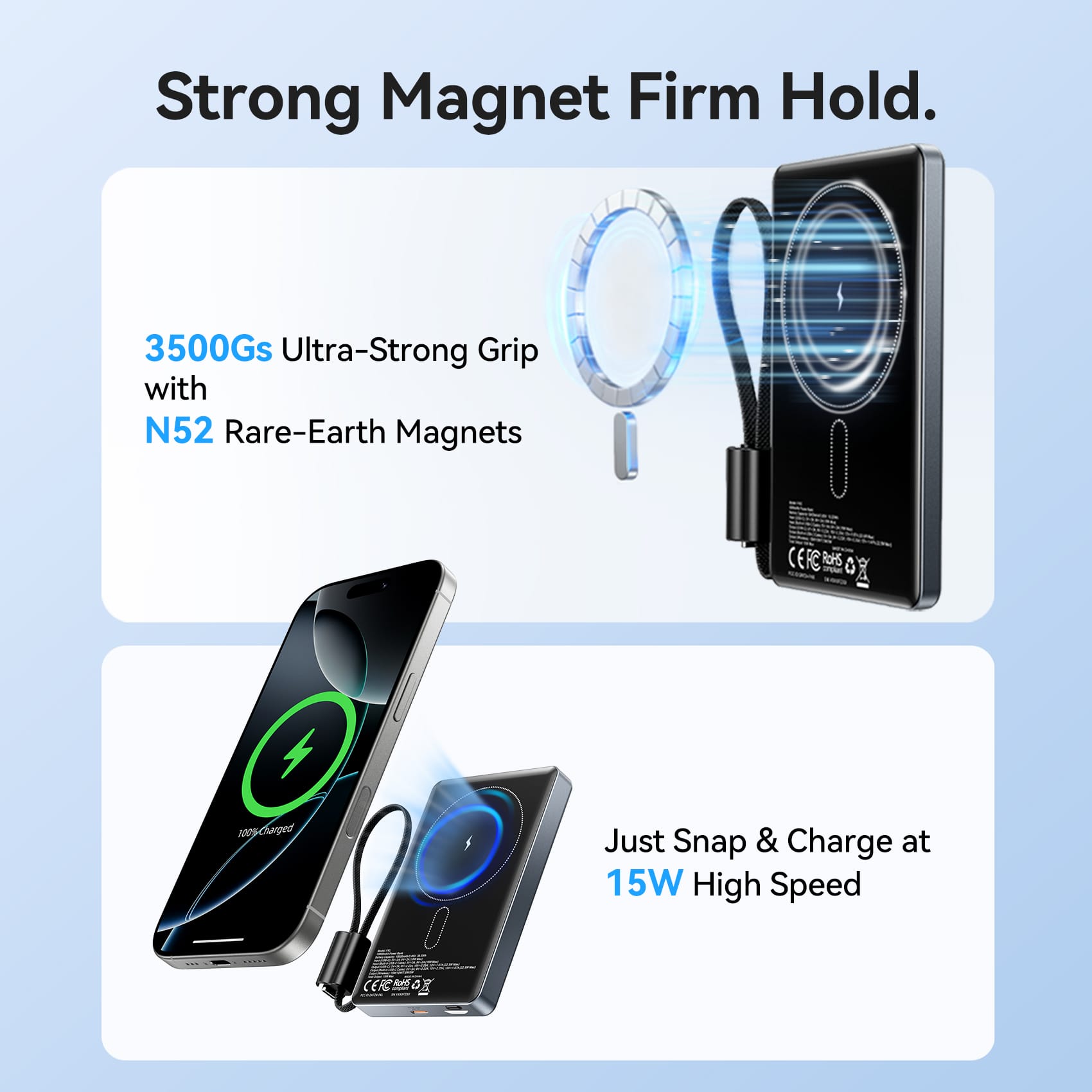 - Snap-and-Go Magnetics: Precision-aligned N52 magnets ensure a stable, efficient wireless connection with MagSafe-compatible cases and phones.
