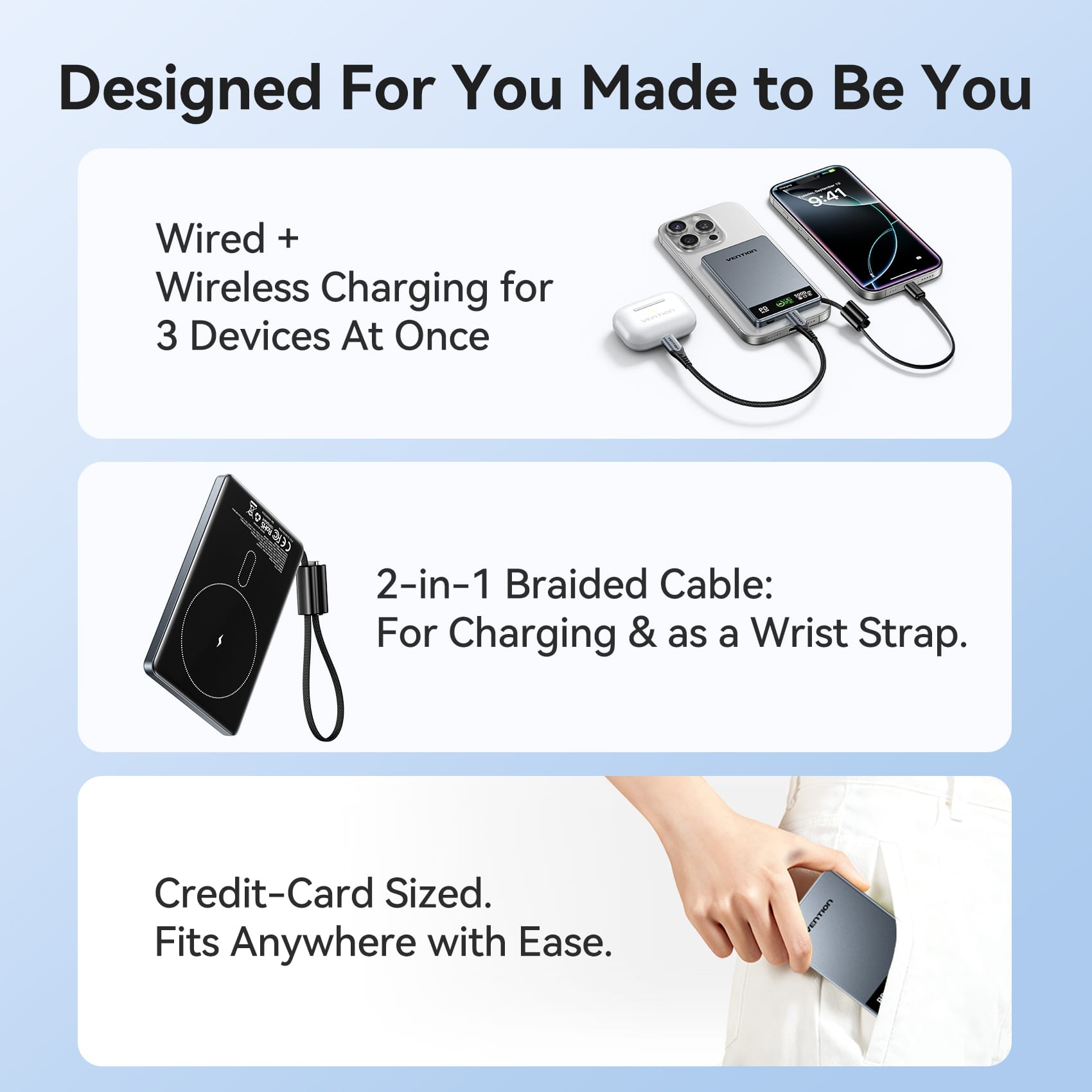 • Ultra-Slim & Lightweight: Designed for maximum portability, it fits comfortably behind a phone or in a pocket without adding significant weight.