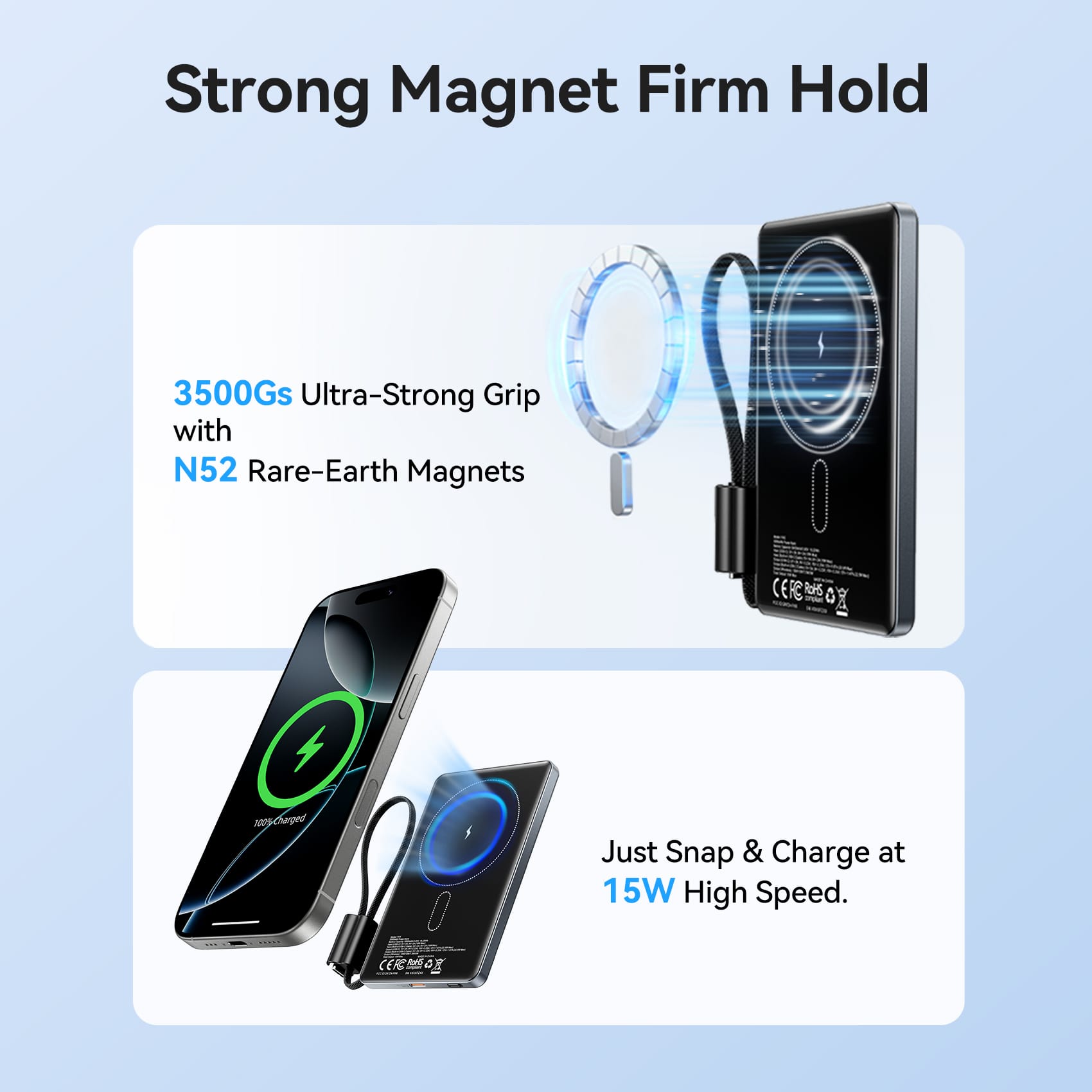 • Strong Magnetic Attachment: Integrated high-strength magnets ensure precise alignment and a stable hold for MagSafe-compatible smartphones.