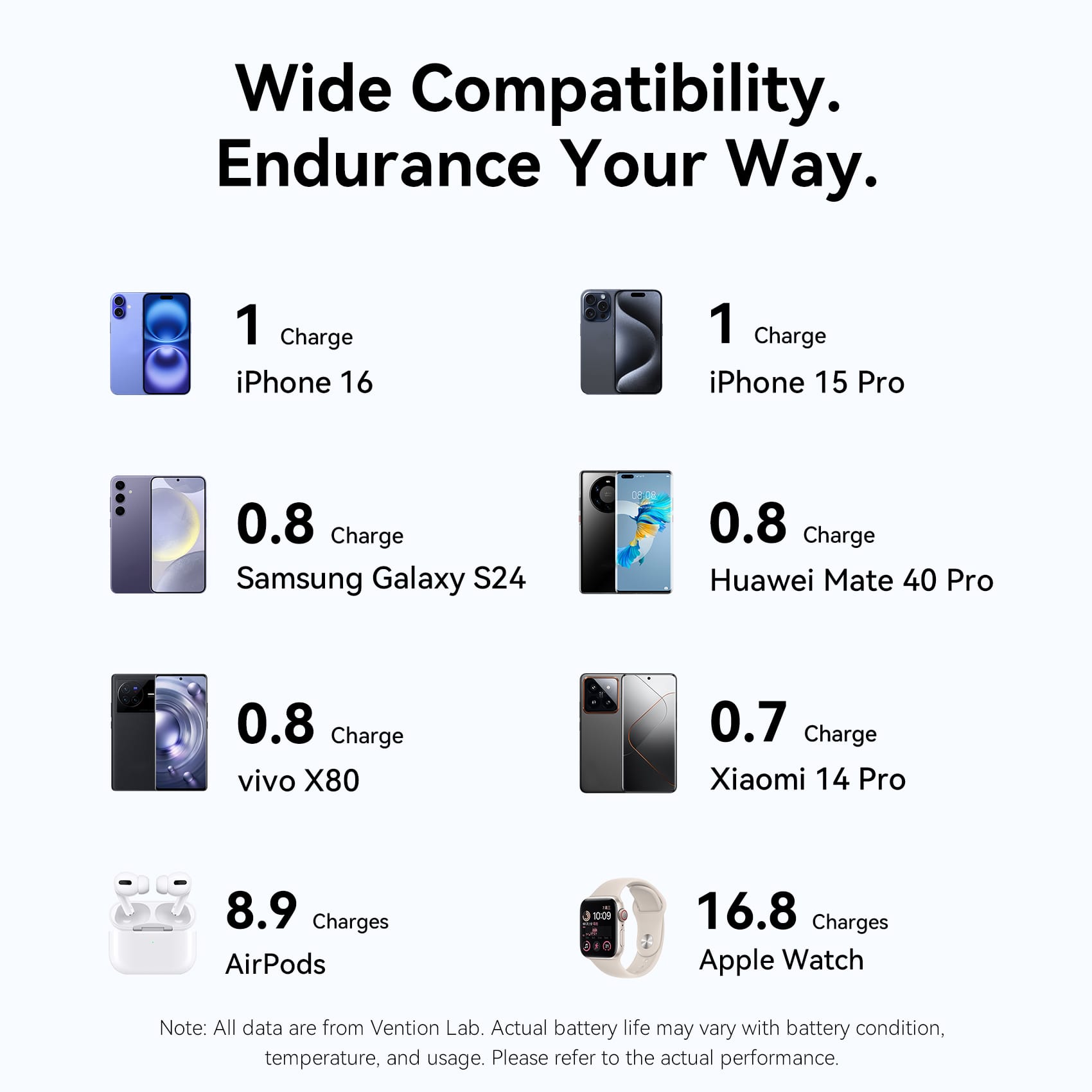 • Two-Way Fast Charging: The USB-C port supports fast input, allowing the power bank itself to be recharged rapidly for its next use.